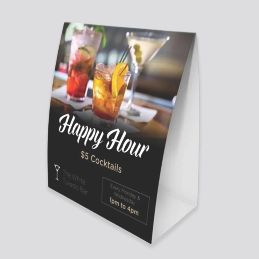 Our table tent cards are printed on premium cardstock with vibrant, fade-resistant inks for a crisp and professional finish. Whether you’re advertising menu items, discounts, or seasonal offers, our printing quality ensures your message stands out beautifully from every angle.